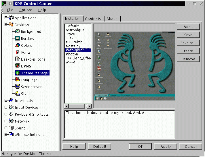To begin, select the Theme Manager category (see Figure 8-4). By default, you have several themes, however there are quite a few more themes available at kde.themes.org, http://kde.themes.org.