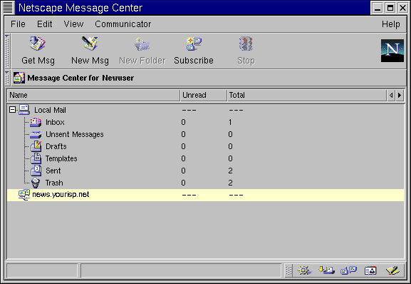 When you are finished subscribing to newsgroups, click the OK button. Your selections will appear in Messenger's main dialog (see Figure 7-21). Note that the Total category represents the total number of messages in the group; the Unread category represents the number of messages you have not read.