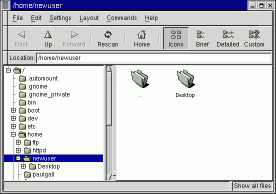 Folders have a corresponding locations on your system. Your default desktop includes a folder showing you the contents of your /home directory (see Figure 2-3). Although you can specify different ways to view the contents of your /home and other directories on your system, in general, the left pane of the file manager shows you the directory tree while the right pane shows you the contents of that directory.