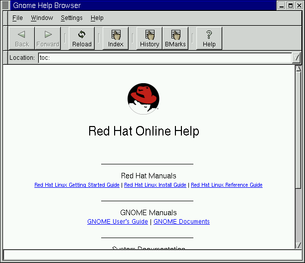 In fact, since this application displays not only GNOME-related help but also info pages and man pages, the GNOME Help Browser can be an invaluable resource for learning about both GNOME and your Red Hat Linux system. (Info pages and man pages are concise help documents which are usually installed on a Linux system. These help documents are covered more extensively in Chapter 12.)