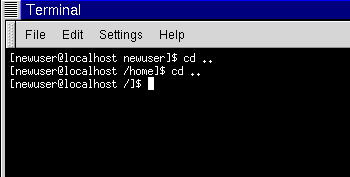 Doesn't look much different from absolute paths, does it? Notice, though, that there's no forward slash in front of home. In essence, you were saying, "go one directory down, to home, then go to newuser, in the home directory."