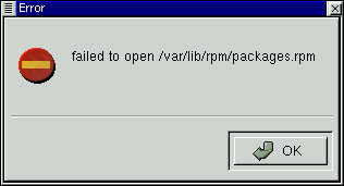If you're getting the error message similar to "failed to open /var/lib/rpm/packages.rpm" (see Figure 15-2) it's likely due to the your permissions.