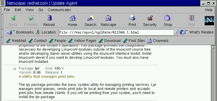 If there are updated packages available, you'll see the name of the package, a summary of its function and related details, such as the latest version number, the release number and the size of the package.